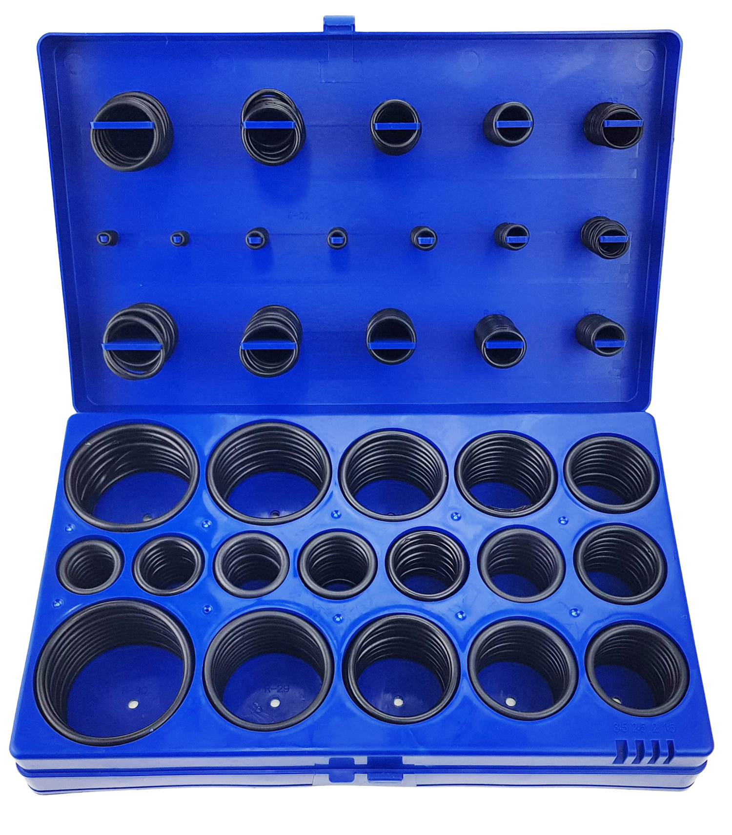 Ein 419 teiliges Universal O-Ring Sortiment in verschiedenen Größen im Kunststoffkoffer sortiert.Die O-Ringe eignen sich bestens für Anwendungen im Bereich Kfz, Sanitär uvm.