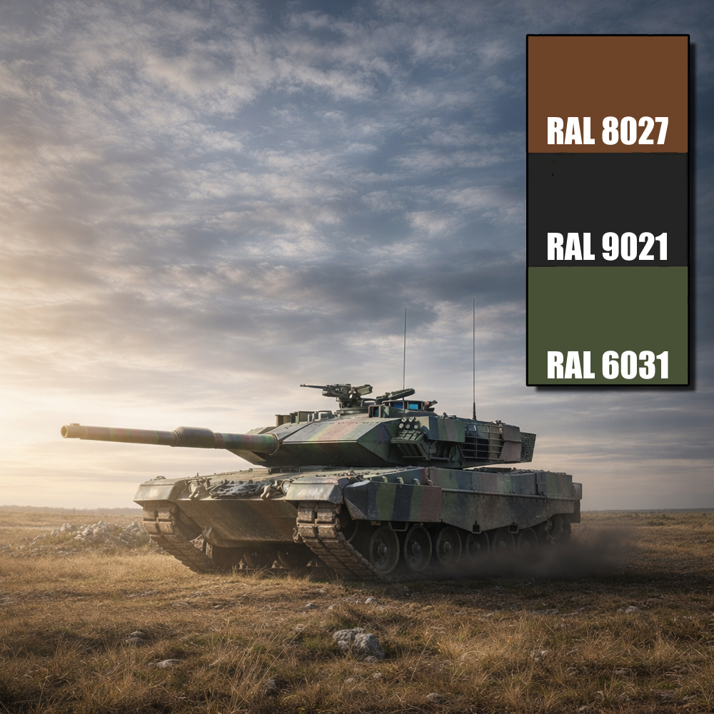 Durch die speziell ausgewählten Farbtöne können professionelle Tarnanstriche erzeugt werden oder diese repariert werden.